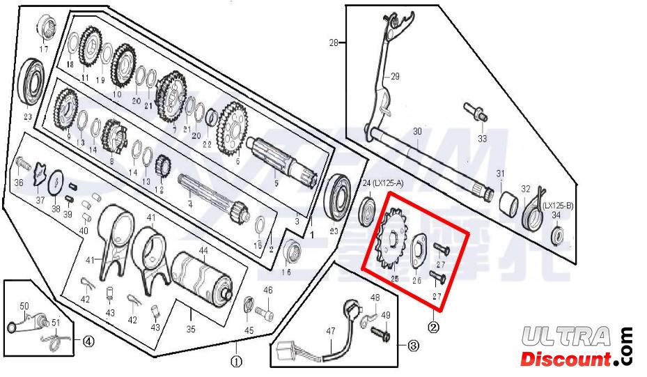 Ritzel und Befestigung für Motoren 125ccm für Dax Skyteam Beschreibung